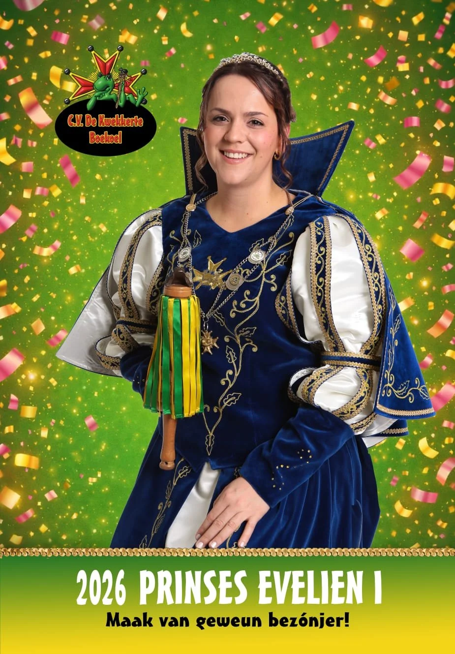 H.D.H Prinses Evelien I (Evers) nuje veurgengster 2026 en eerste prinses biej CV De Kwekkerte Boekoel
