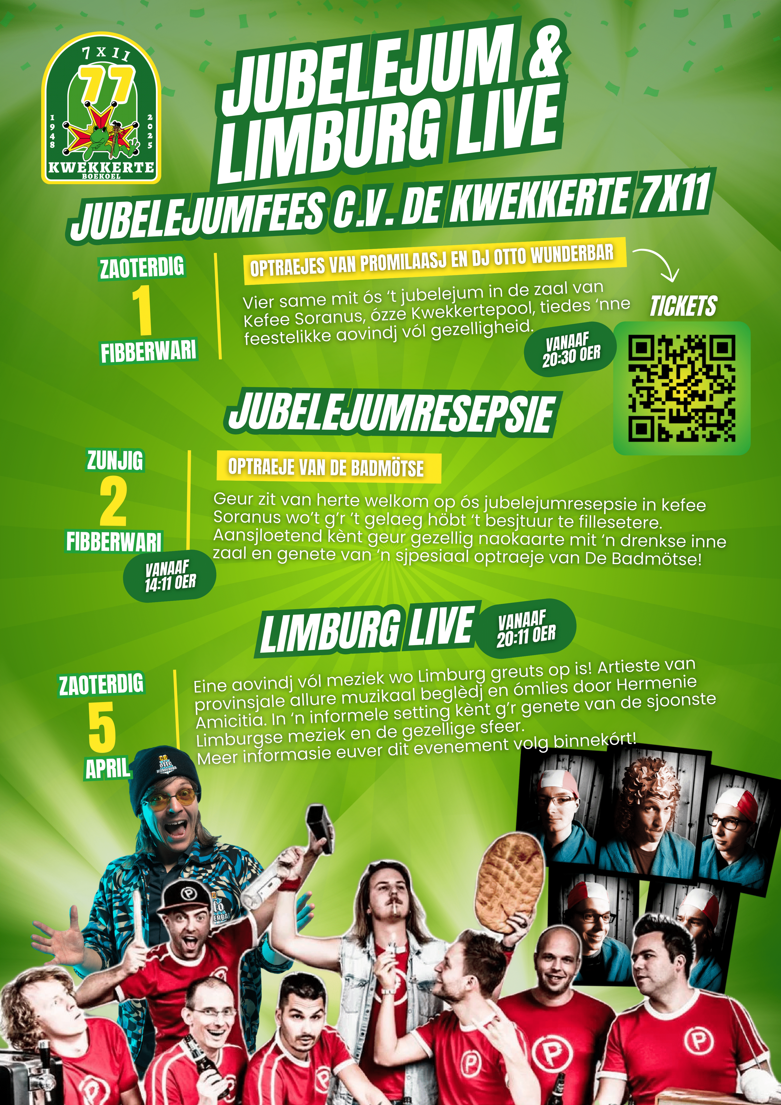 Mer toen…. De sjpanning in de zaal sjteeg, d’r kwome van versjillende kenj verdèkte miense de zaal ingeloupe. Ein van die luuj mós ’t toch zin? En jao. Nao de Hoeskwakers en de Kuulköpkes höbbe ouch eindelik de Kwekkerte ’n prinses. Prinses Evelien I (Evers) ónthulde zichzelf es de eerste prinses biej de Kwekkerte op de Boekoel. Het zal gaon regere mit de sjpreuk: “Maak van geweun bezónjer!”